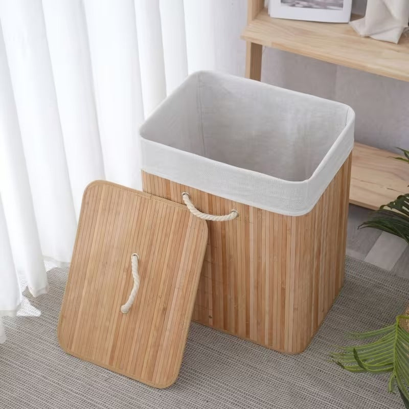 🧺🌿 Bamboo Laundry Basket with Lid – 72L