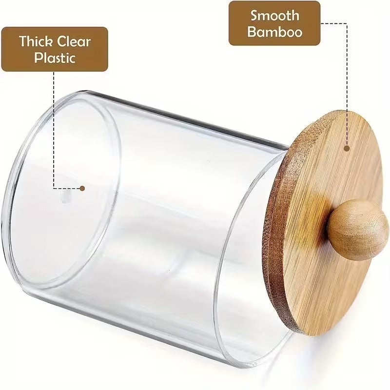 Keep your cotton buds neatly stored with this compact and elegant storage jar, combining a clear plastic body with a natural wooden lid for a modern and minimalist look ✨